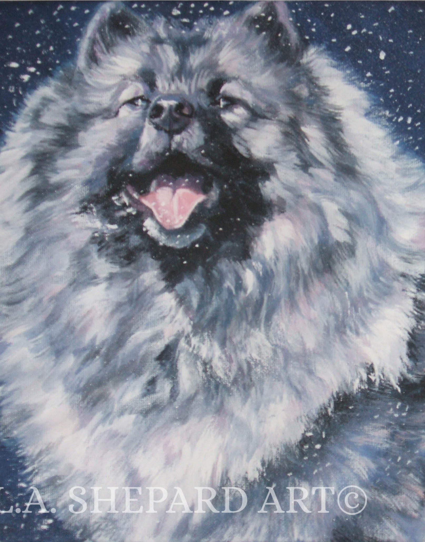 KEESHOND DOG PORTRAIT print of LAShepard painting 8x10" xmas