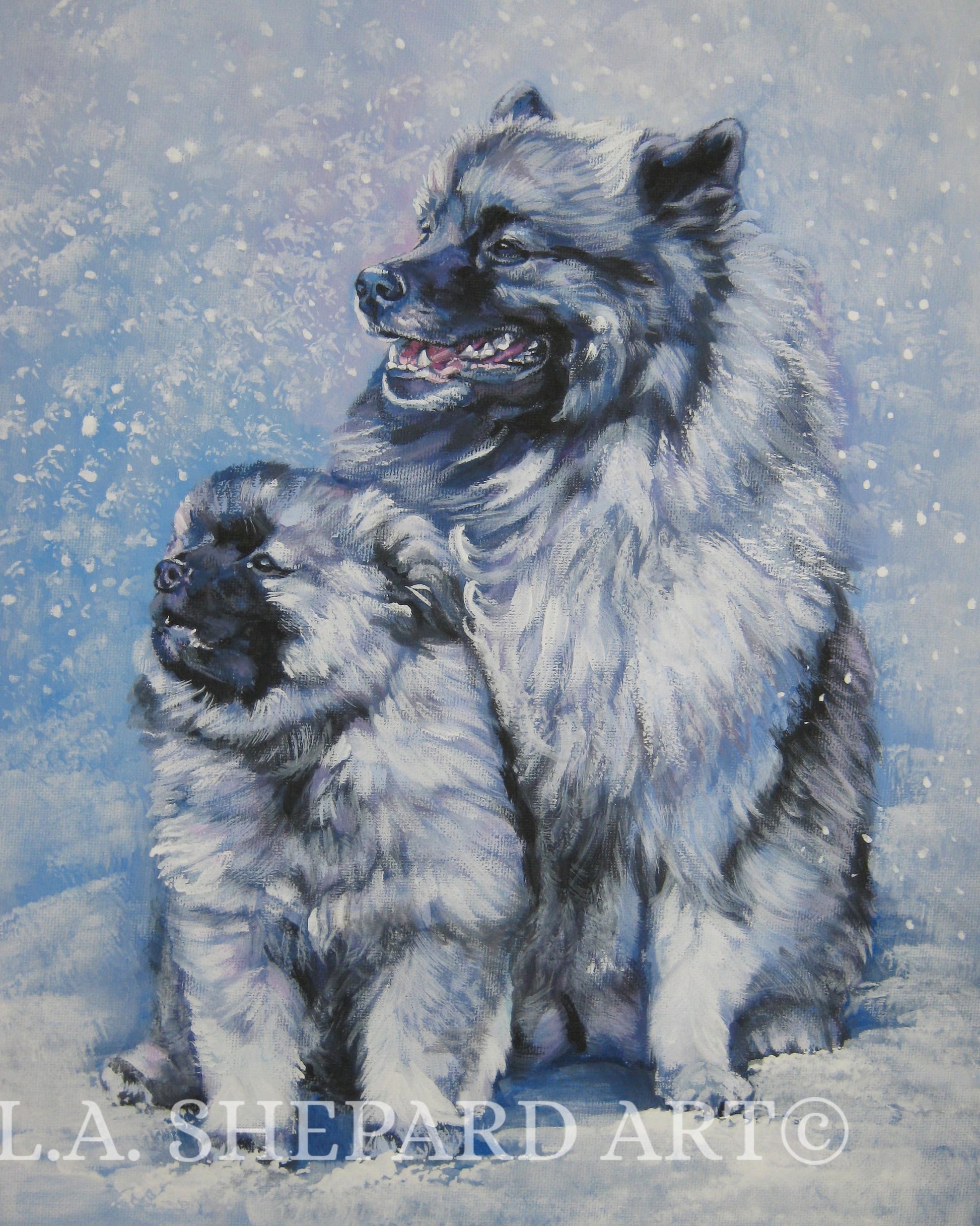 Keeshond dog snow art canvas PRINT of LA Shepard painting 11x14