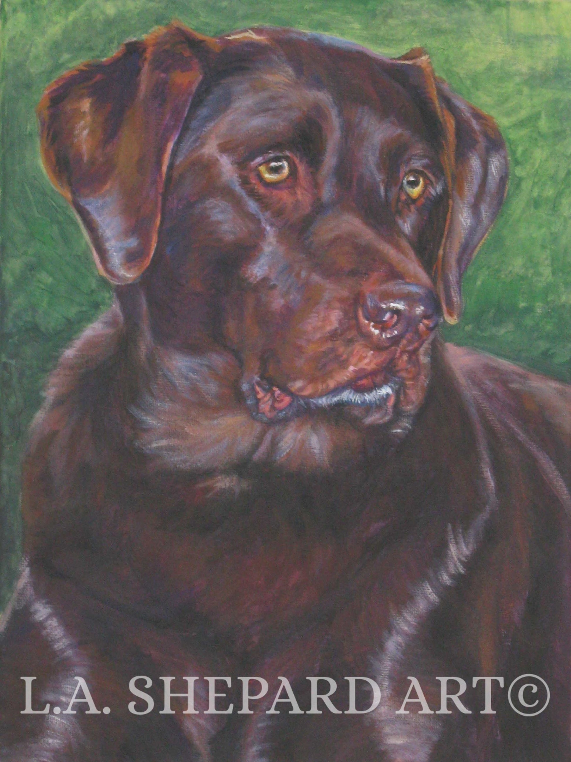 Labrador retriever dog art portrait PRINT of LAShepard painting 12x16 CHOCOLATE LAB