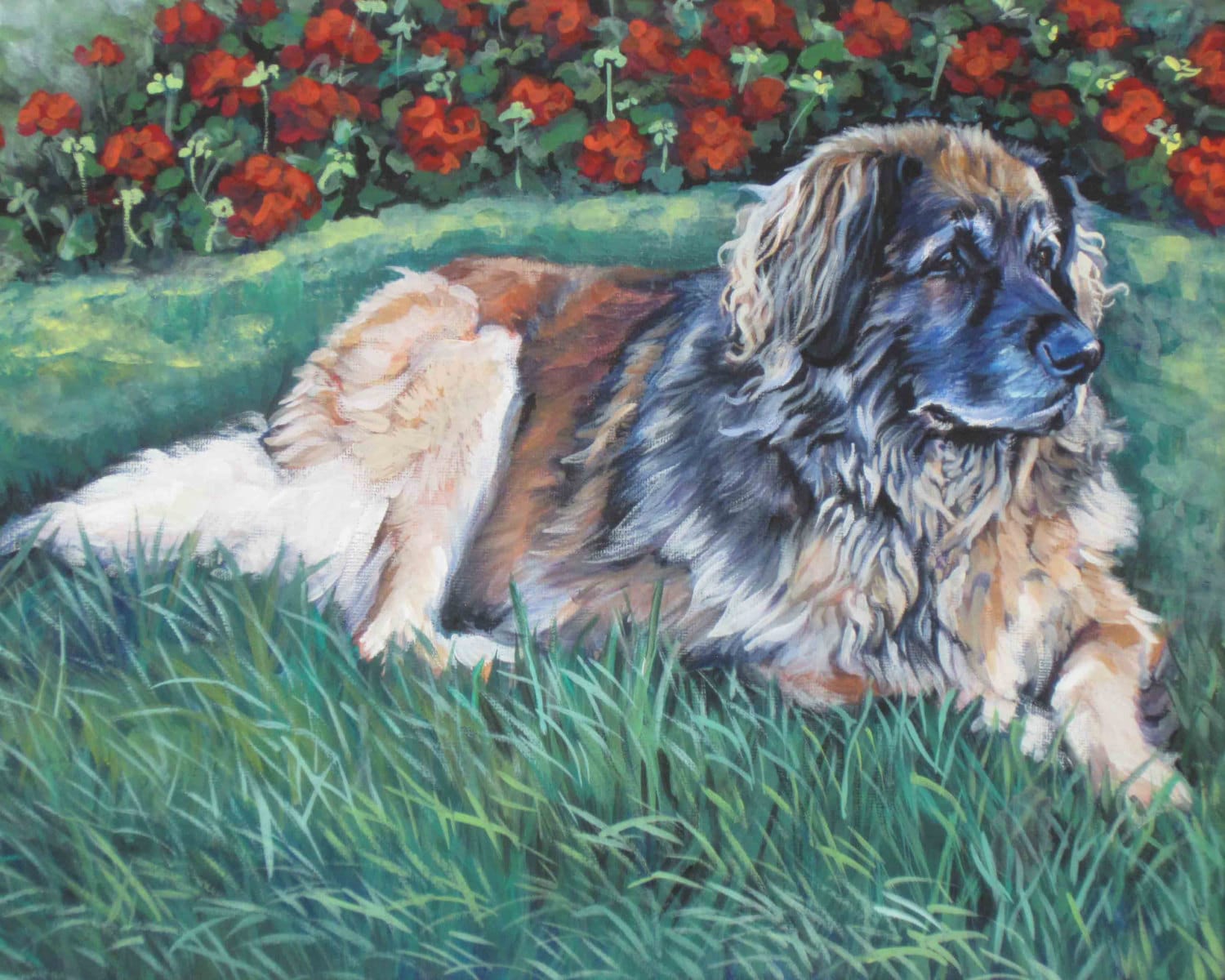 LEONBERGER dog portrait art canvas PRINT of LA Shepard painting 11x14"