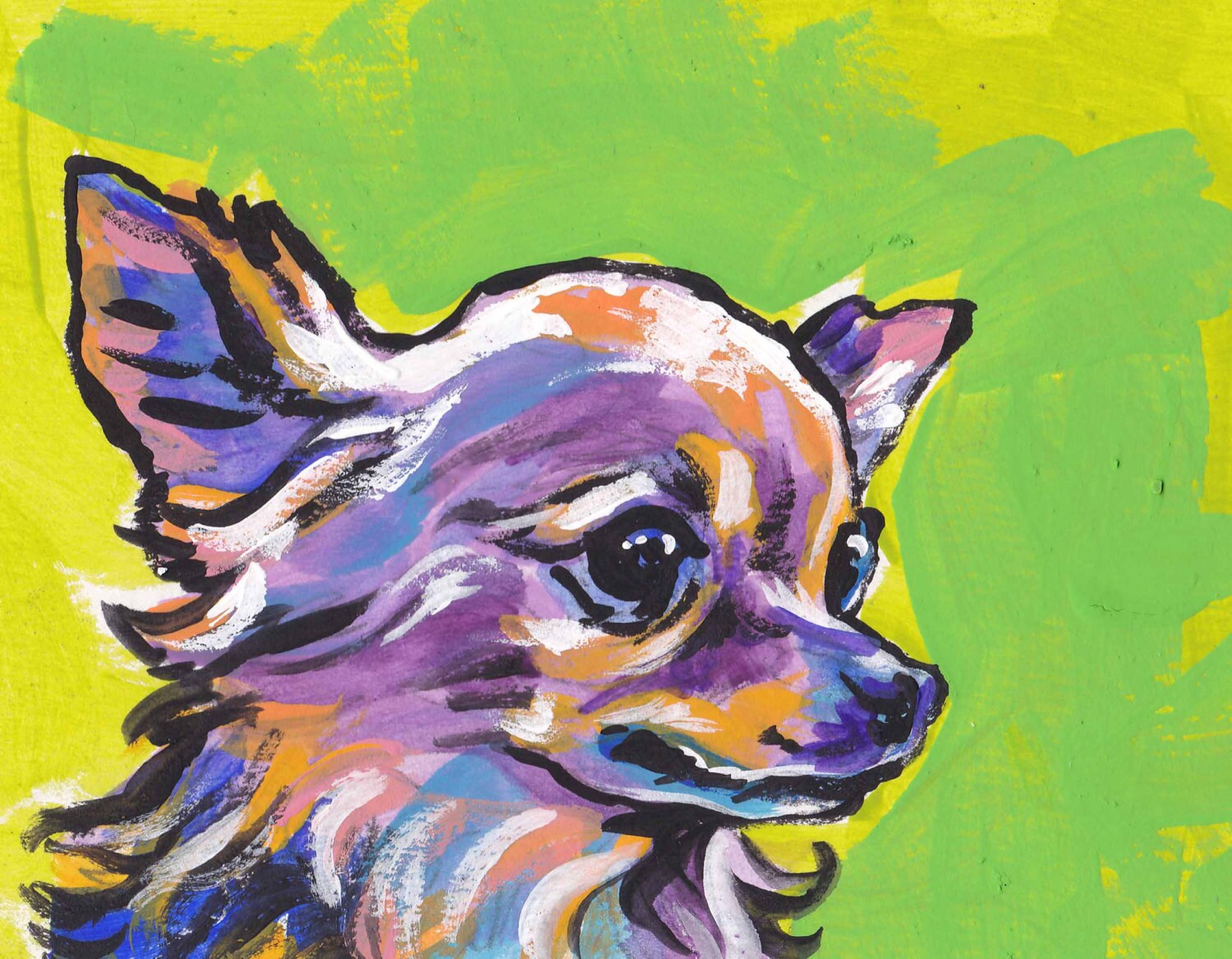long haired Chihuahua portrait modern Dog art print of pop art painting 8.5x11"