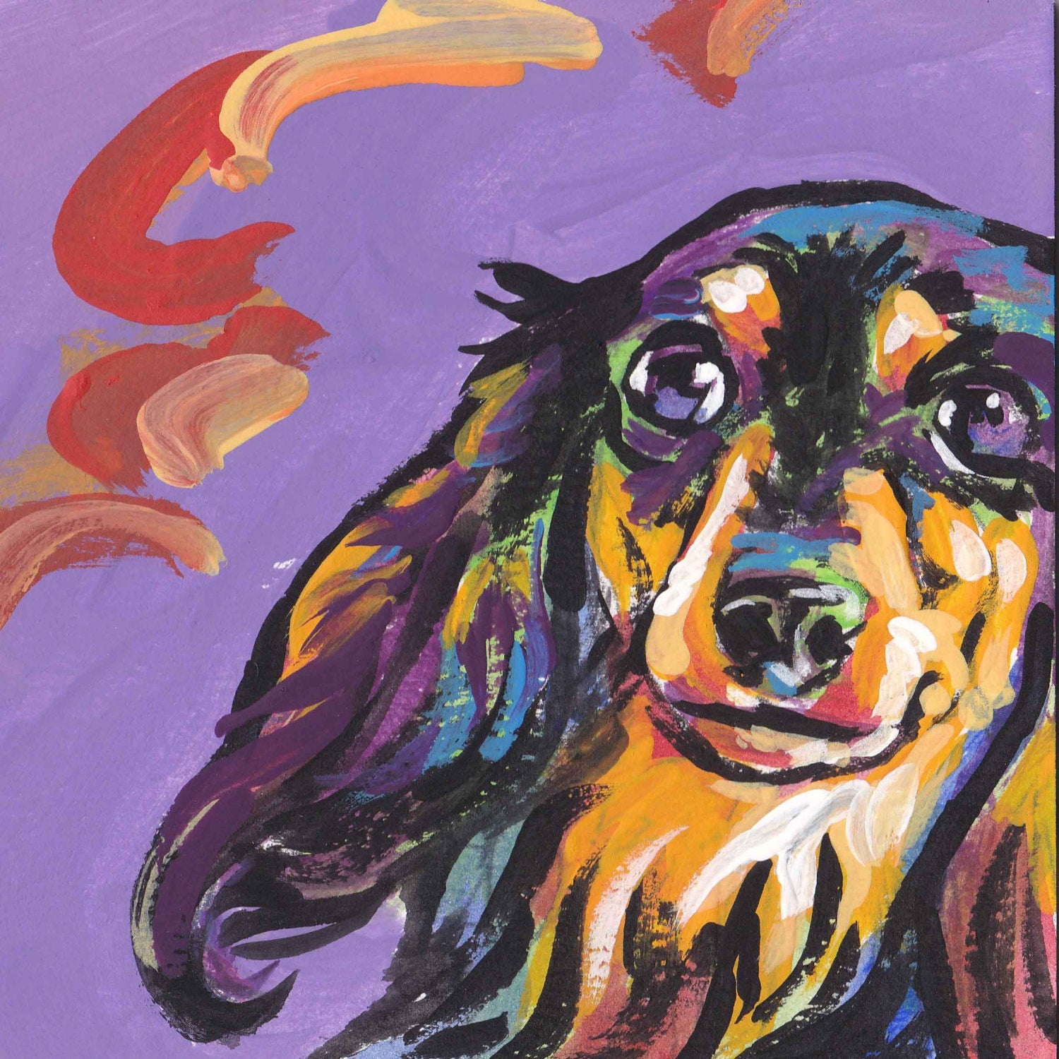 long haired Dachshund portrait art print of pop art painting bright colors 8x8