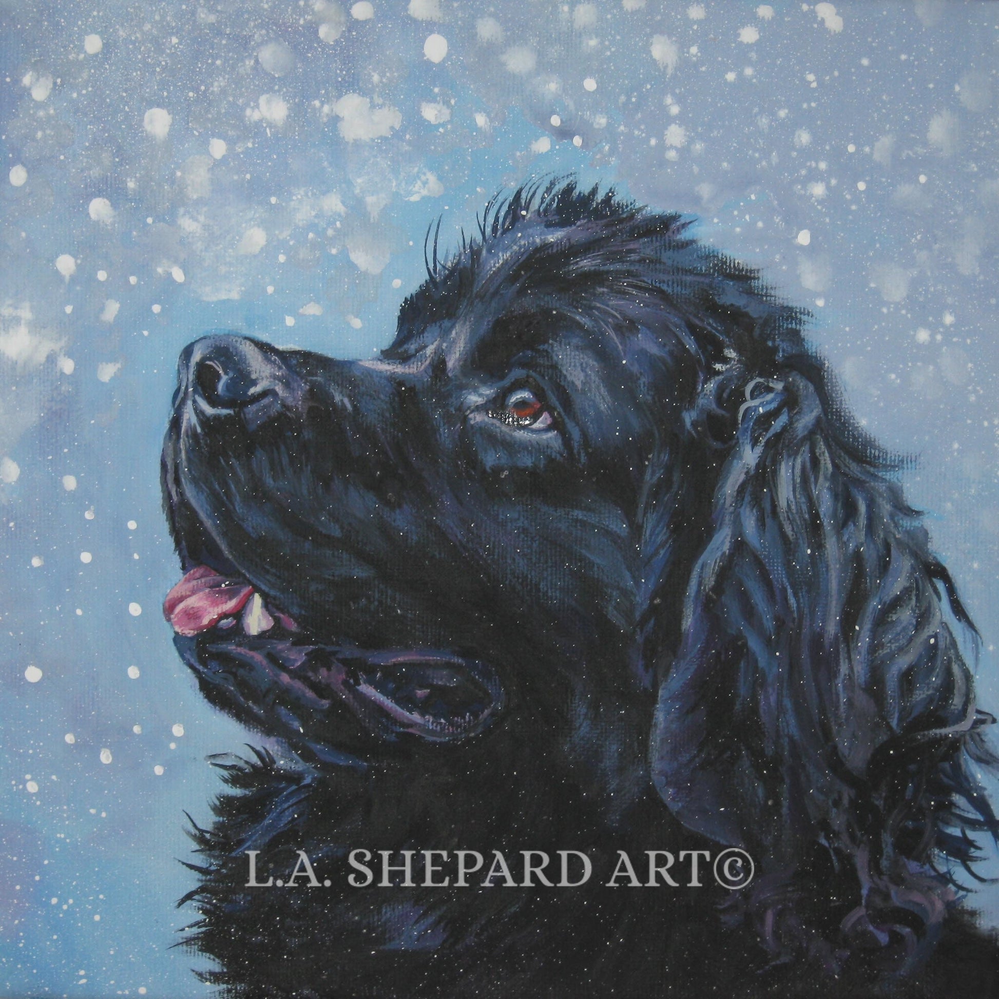 NEWFOUNDLAND DOG art portrait PRINT of LAShepard painting 8x8 winter snow