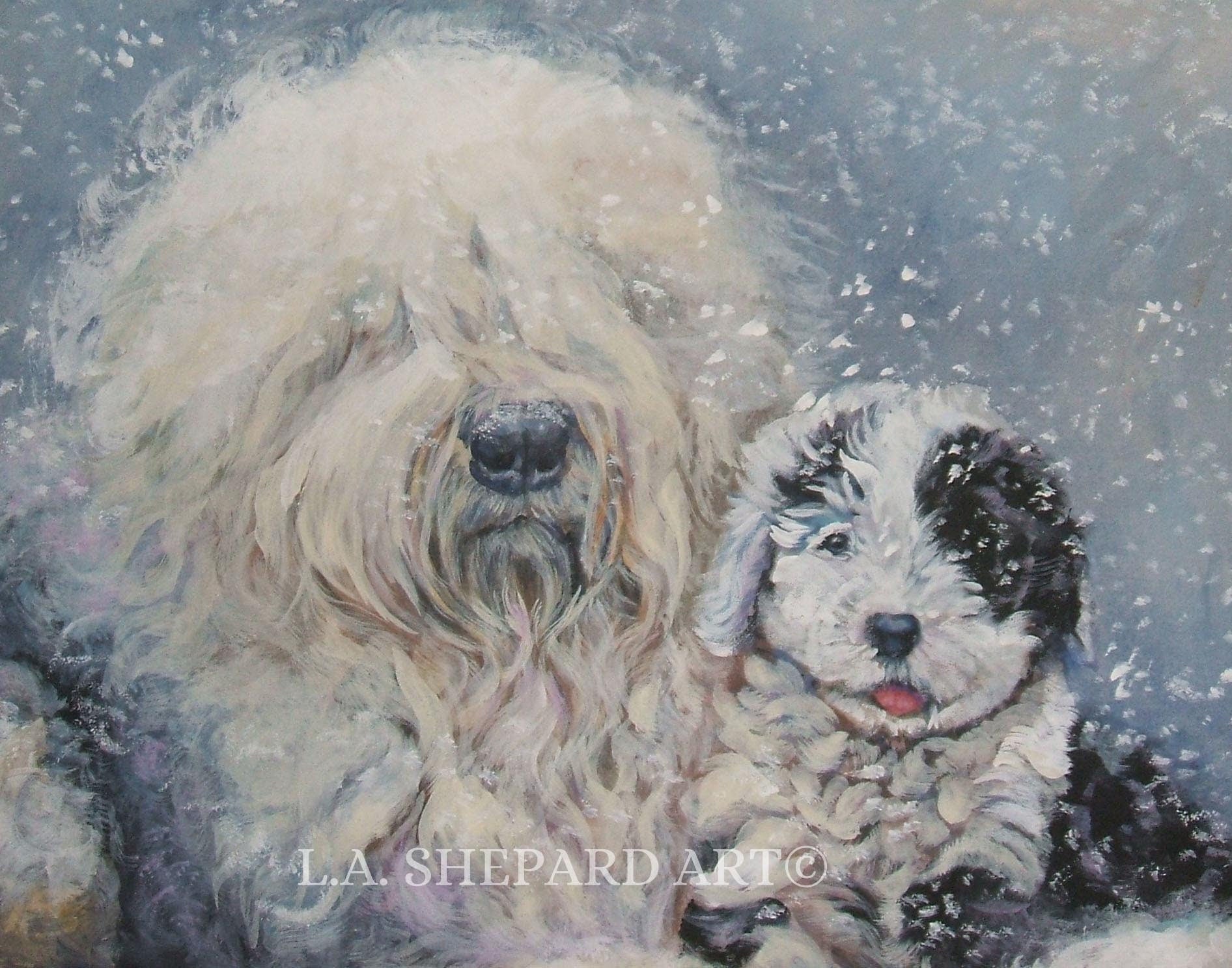 Old English Sheepdog dog art portrait canvas PRINT of LAShepard painting 11x14 OES xmas