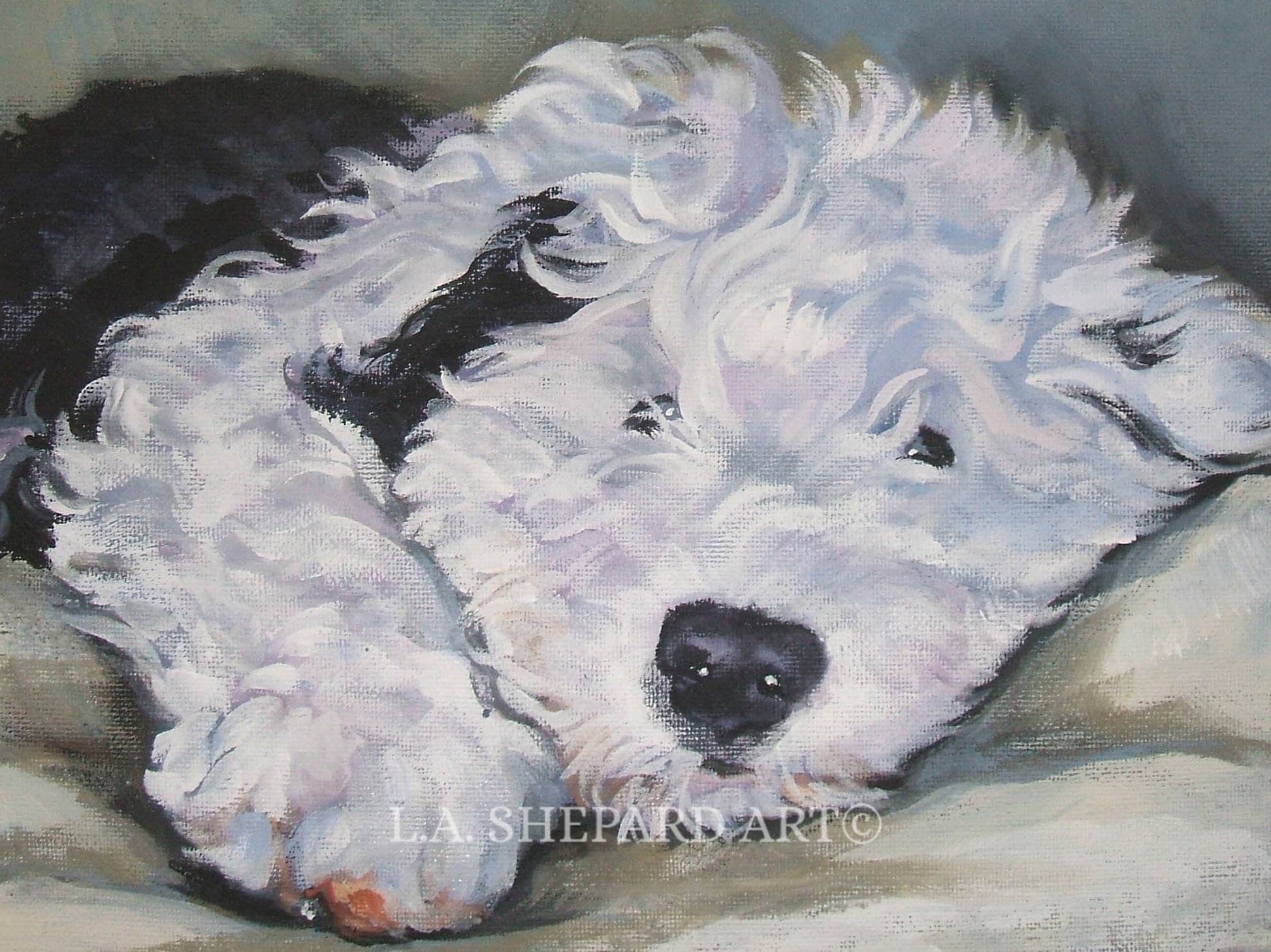 8 x 10 inch Old English Sheepdog GICLEE print by L.A.Shepard