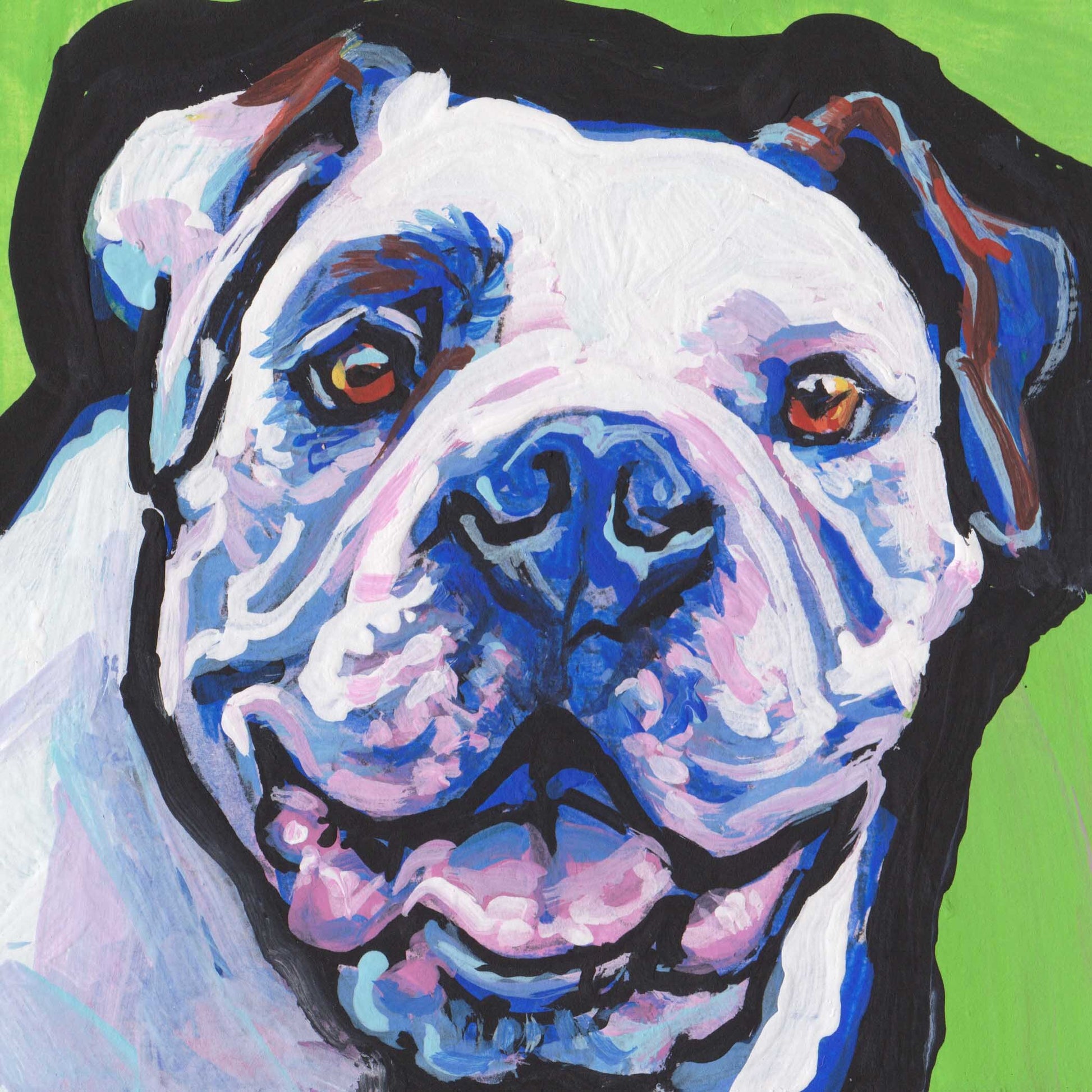 Olde English Bulldogg OEB art portrait PRINT of modern pop art painting bright colors 8x8"