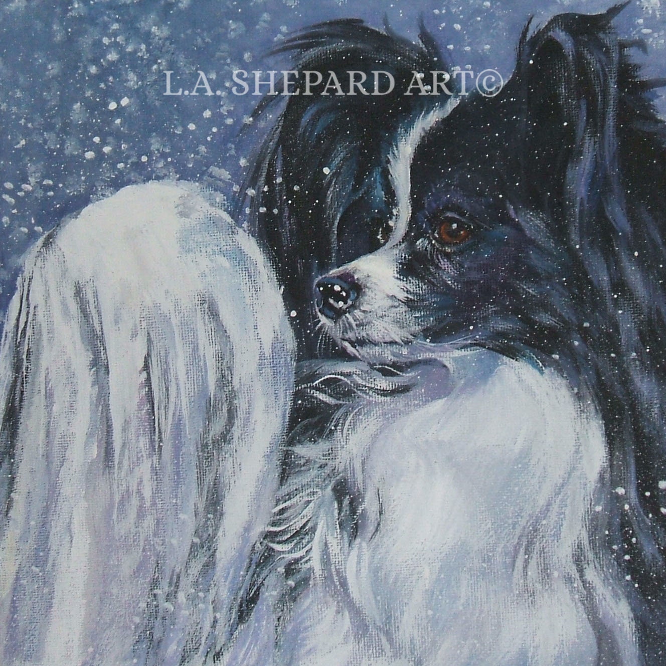 PAPILLON dog portrait art canvas PRINT of LAShepard painting 8x8"
