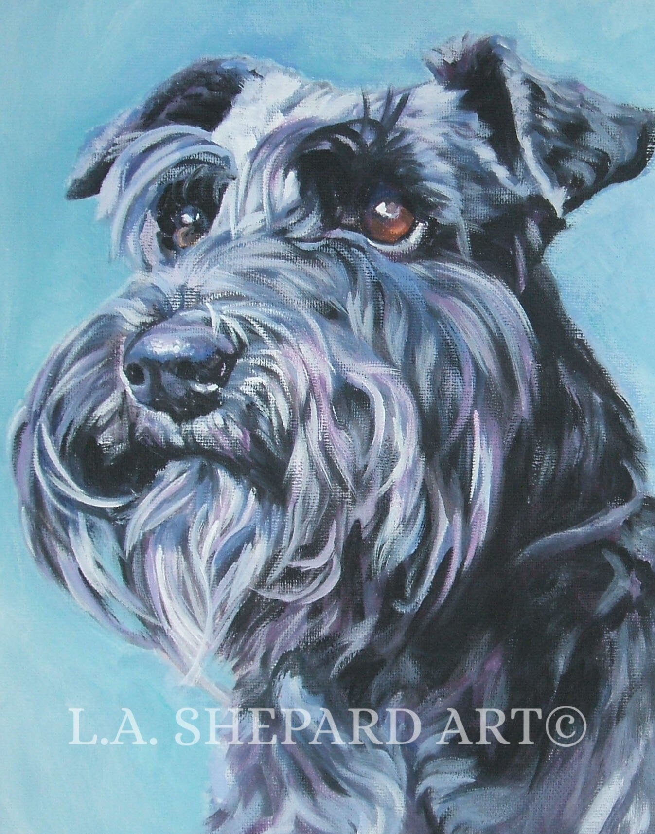 SCHNAUZER DOG art PORTRAIT canvas print of LAShepard painting 11x14