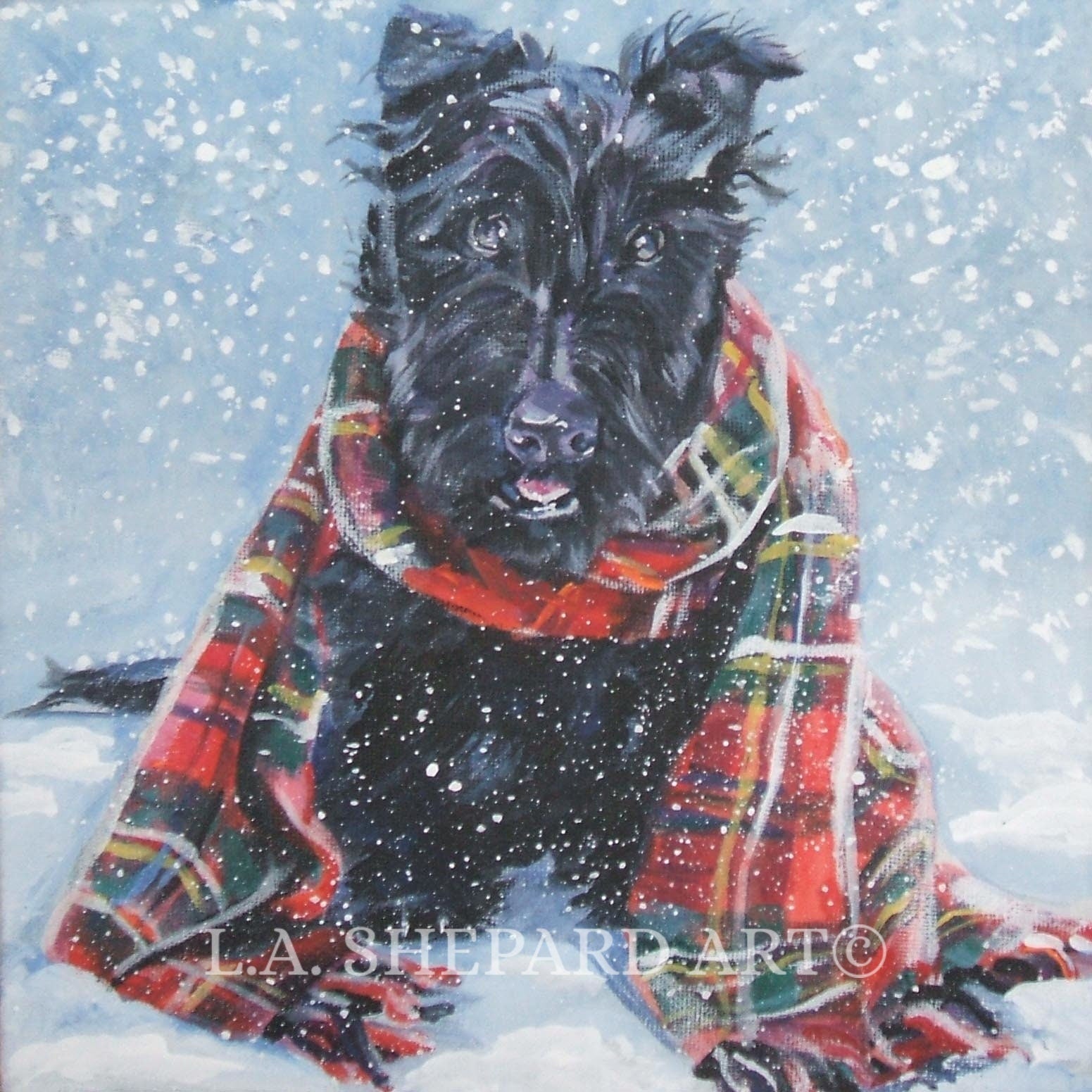 Scottish Terrier SCOTTIE ART canvas PRINT of LAShepard painting 8x8 xmas holiday art