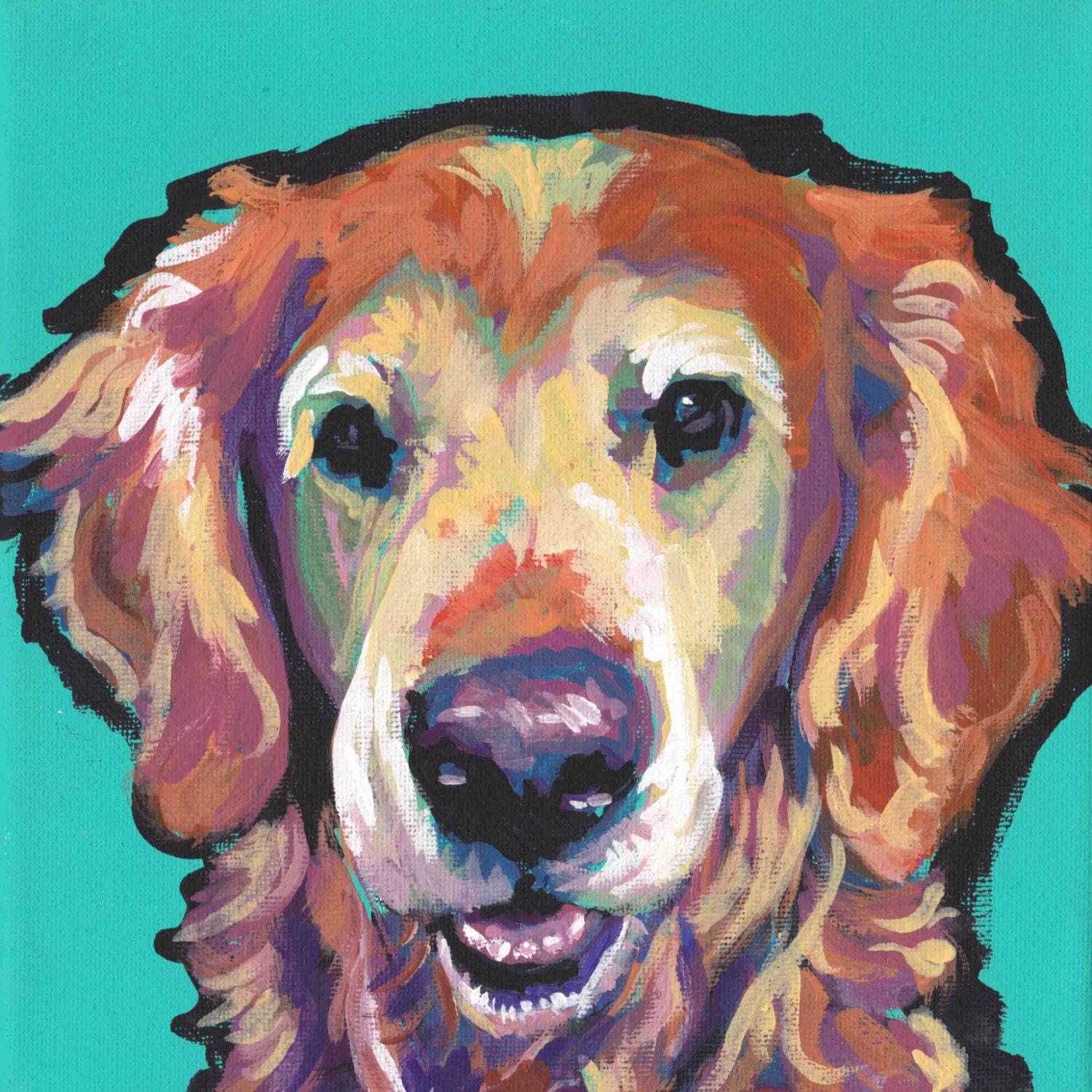 senior Golden Retriever dog portrait print of bright pop art Painting 8x8"