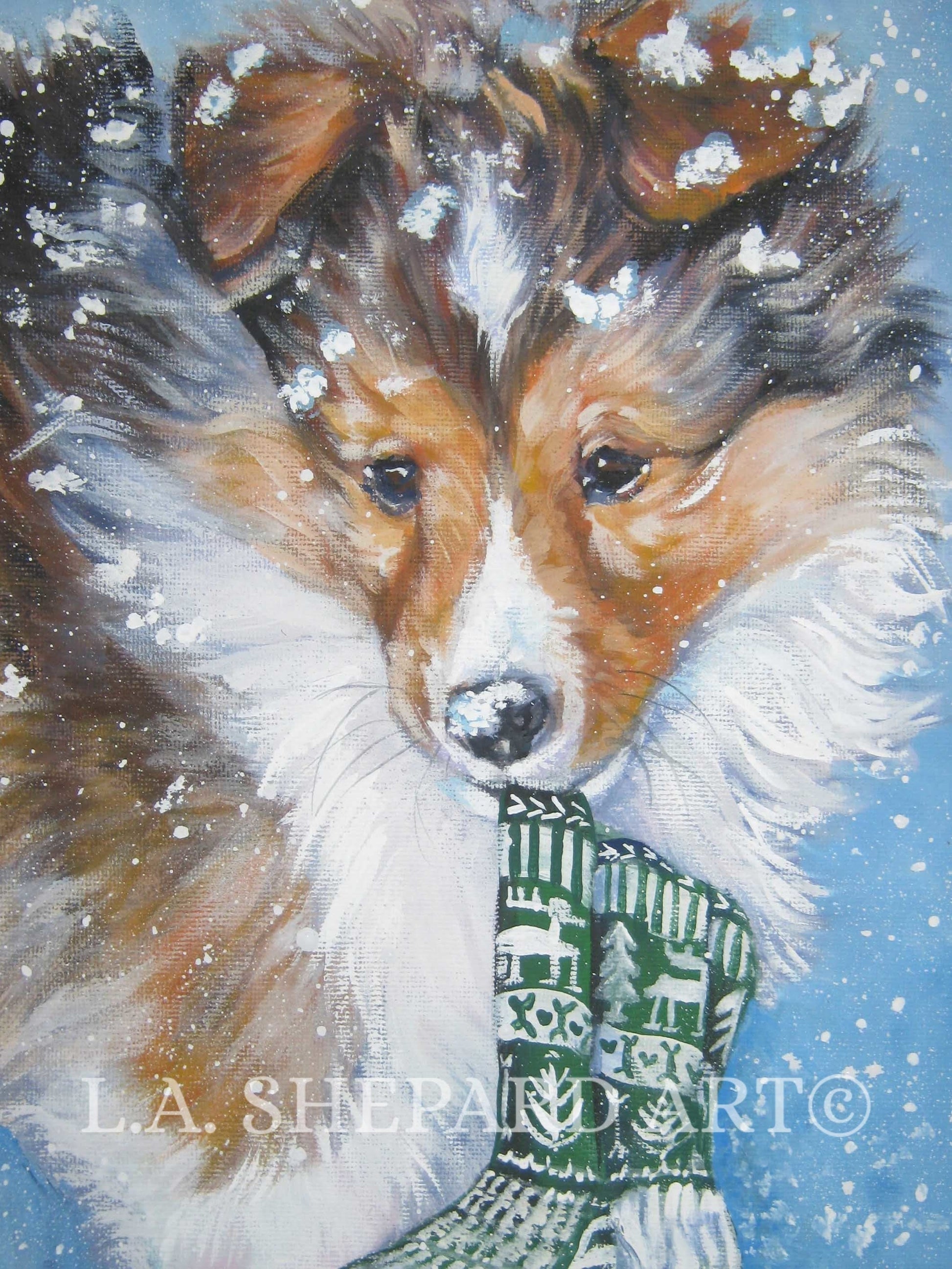 Shetland Sheepdog SHELTIE portrait dog art canvas PRINT of LAShepard painting puppy XMAS 8x10"
