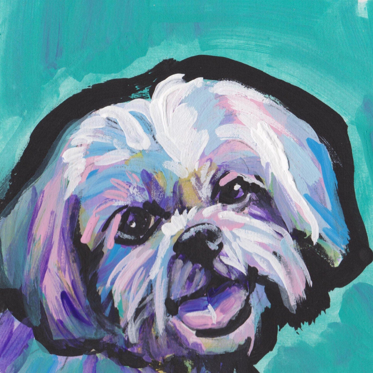 SHIH TZU Dog portrait art print of pop art painting bright colors 8x8" fun nursery wall art