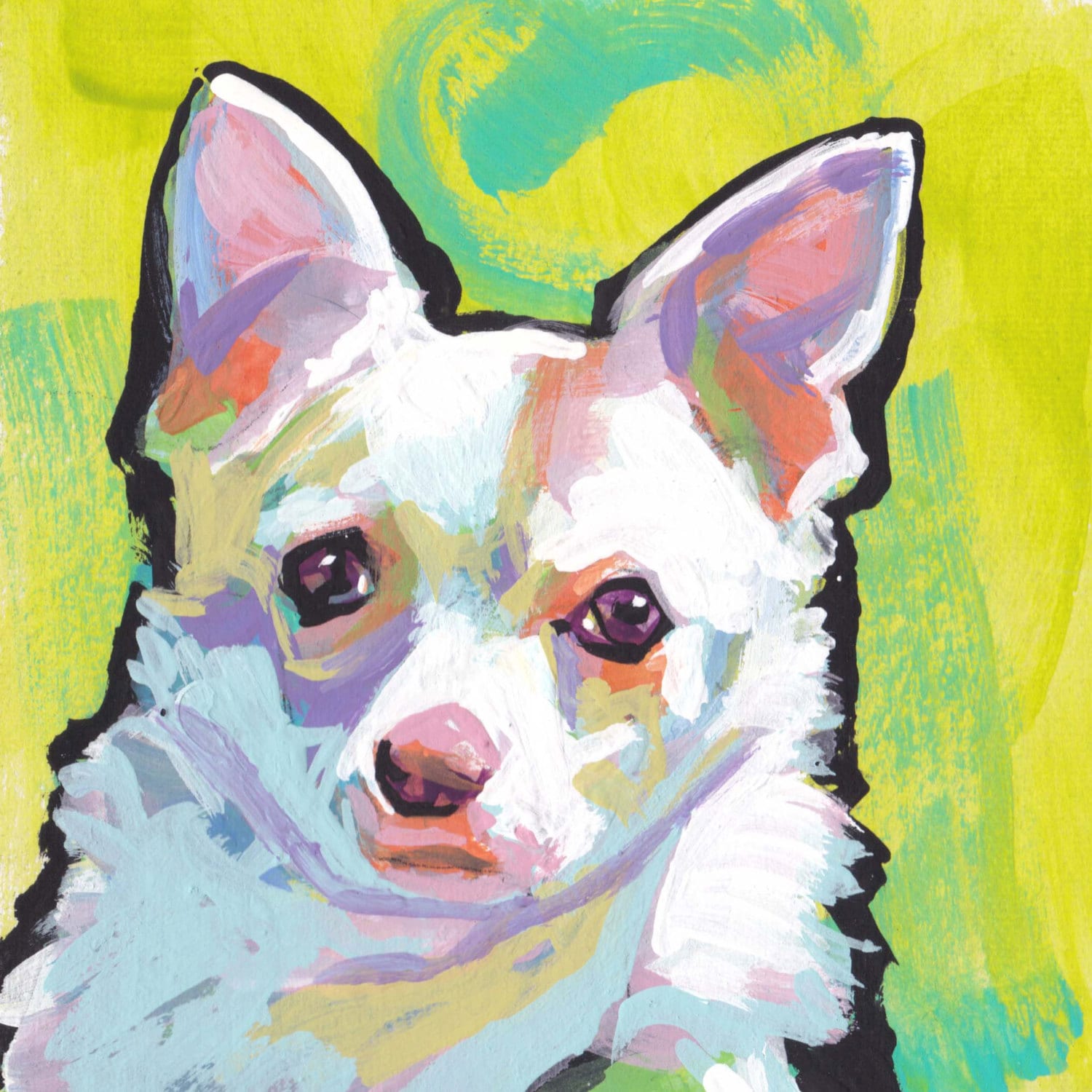short haired Chihuahua portrait art print of pop art Dog painting bright colors 12x12