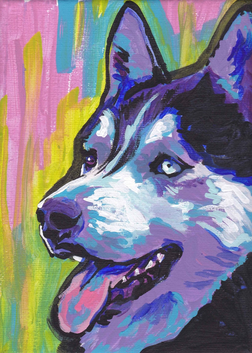 Siberian HUSKY DOG PORTRAIT art print of pop art painting bright colorful wall art 8.5x11"