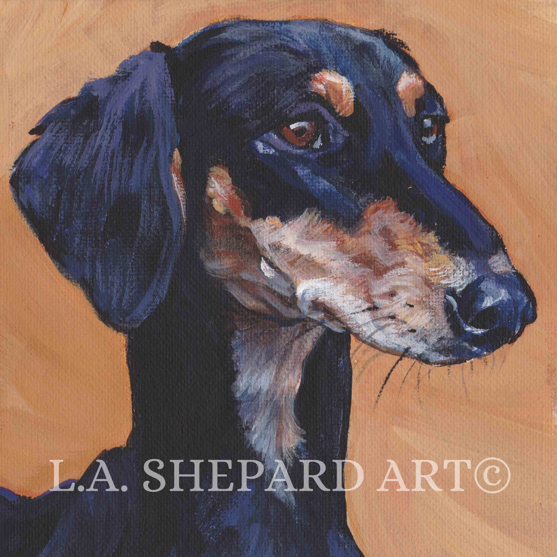 smooth SALUKI dog art portrait canvas PRINT of LAShepard painting 8x8" sighthound