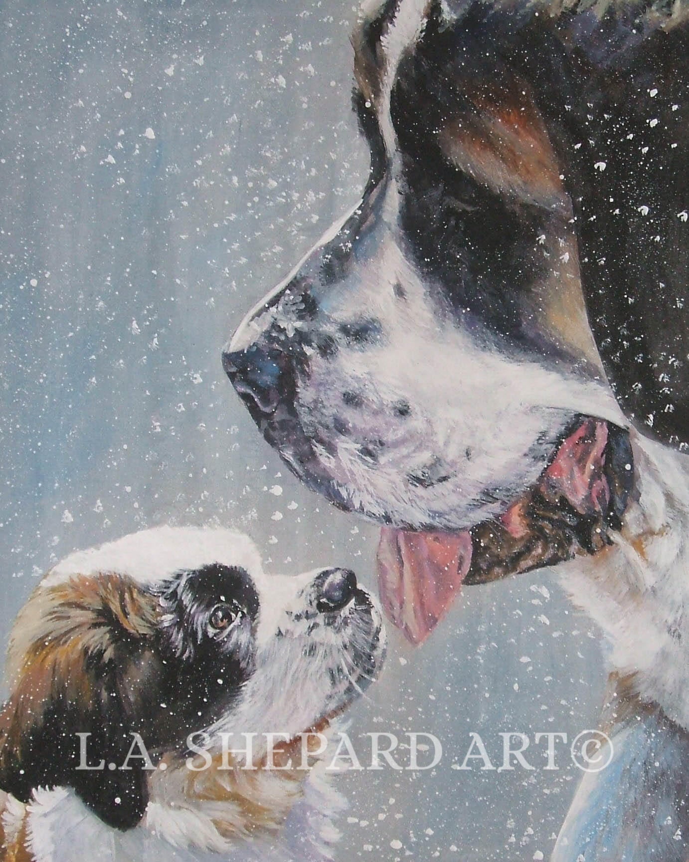 Saint Bernards "Snowy Saint Bernards" Giclée Print of Original Painting by LA Shepard