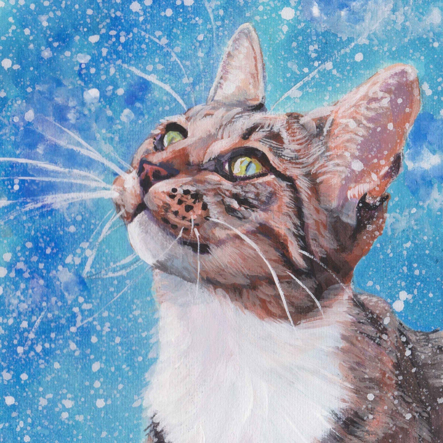 TABBY CAT in snow portrait canvas of LAShepard painting 8x8" xmas