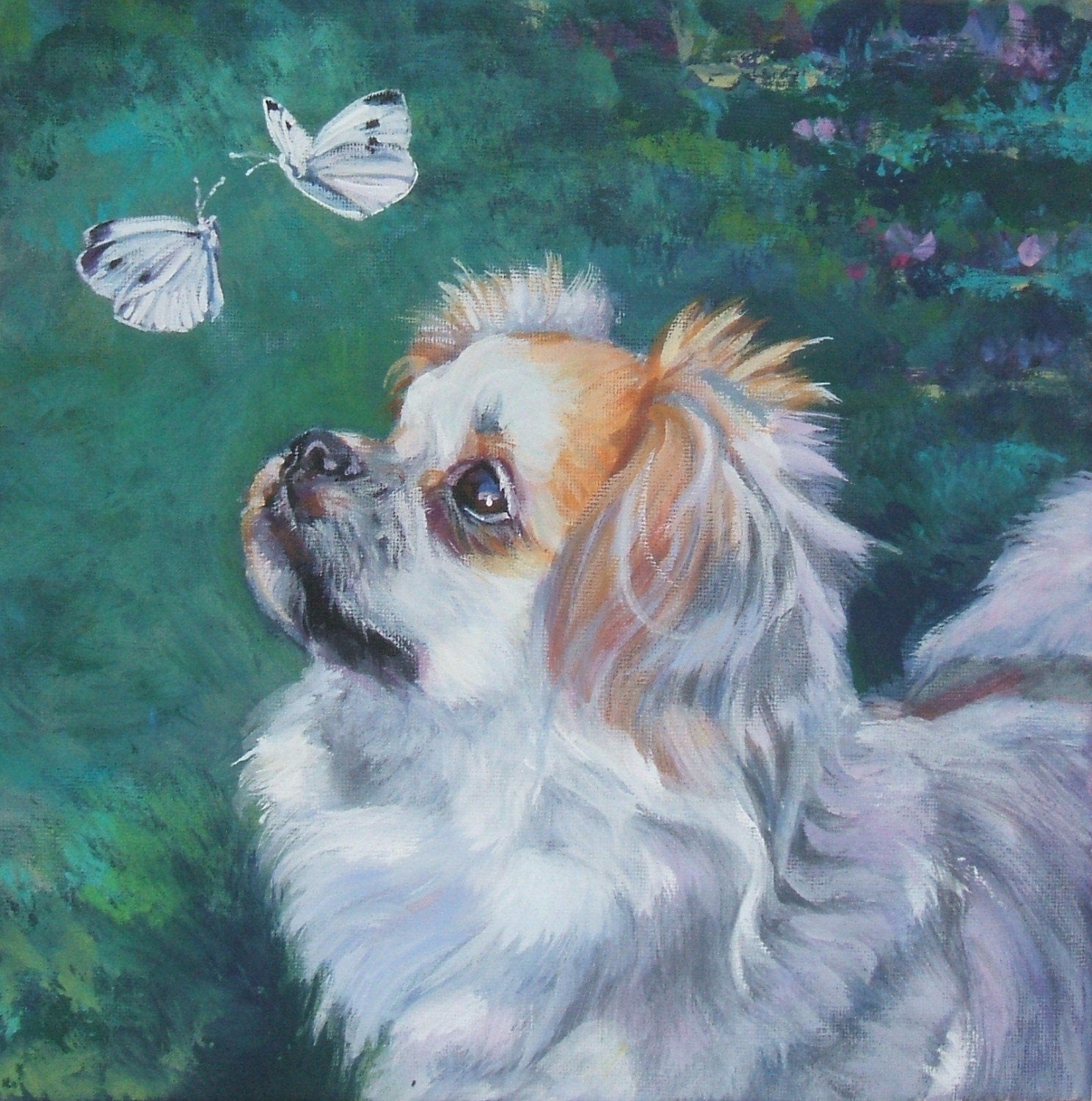 Tibetan Spaniel CANVAS print of original painting by L.A.Shepard 8 x 8 inch