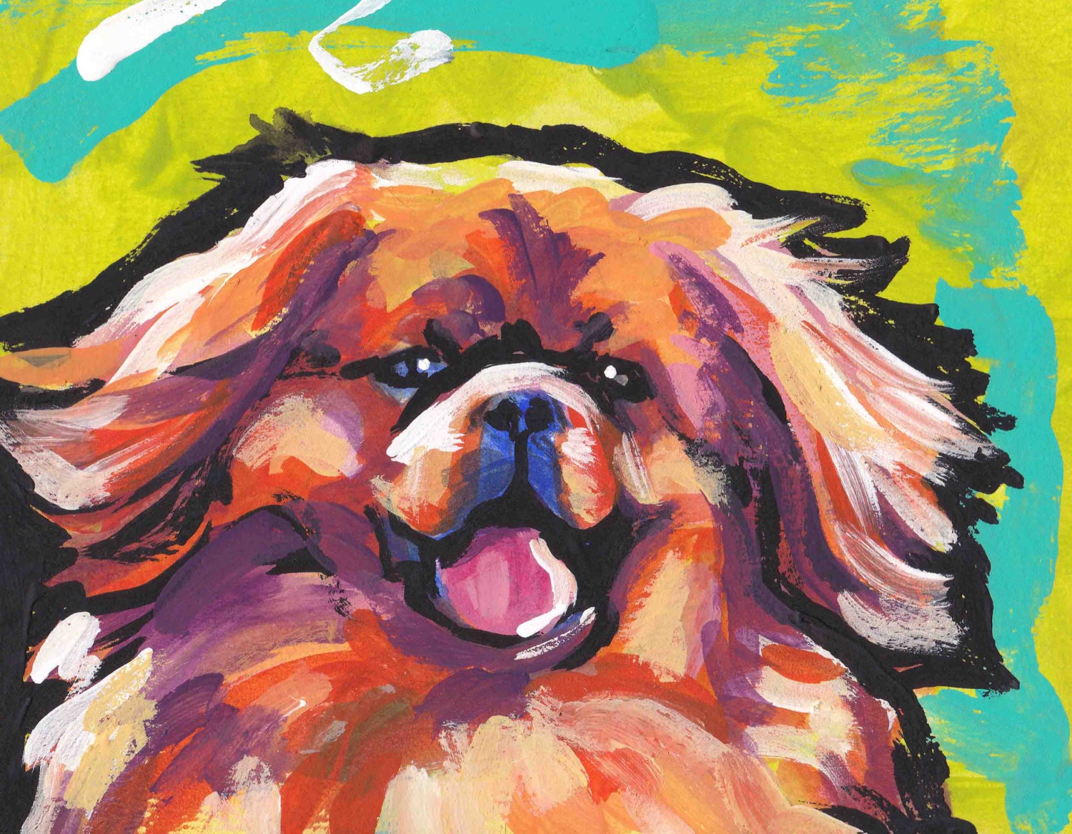 TIBETAN SPANIEL dog portrait PRINT of pop art painting bright colors 8.5x11"