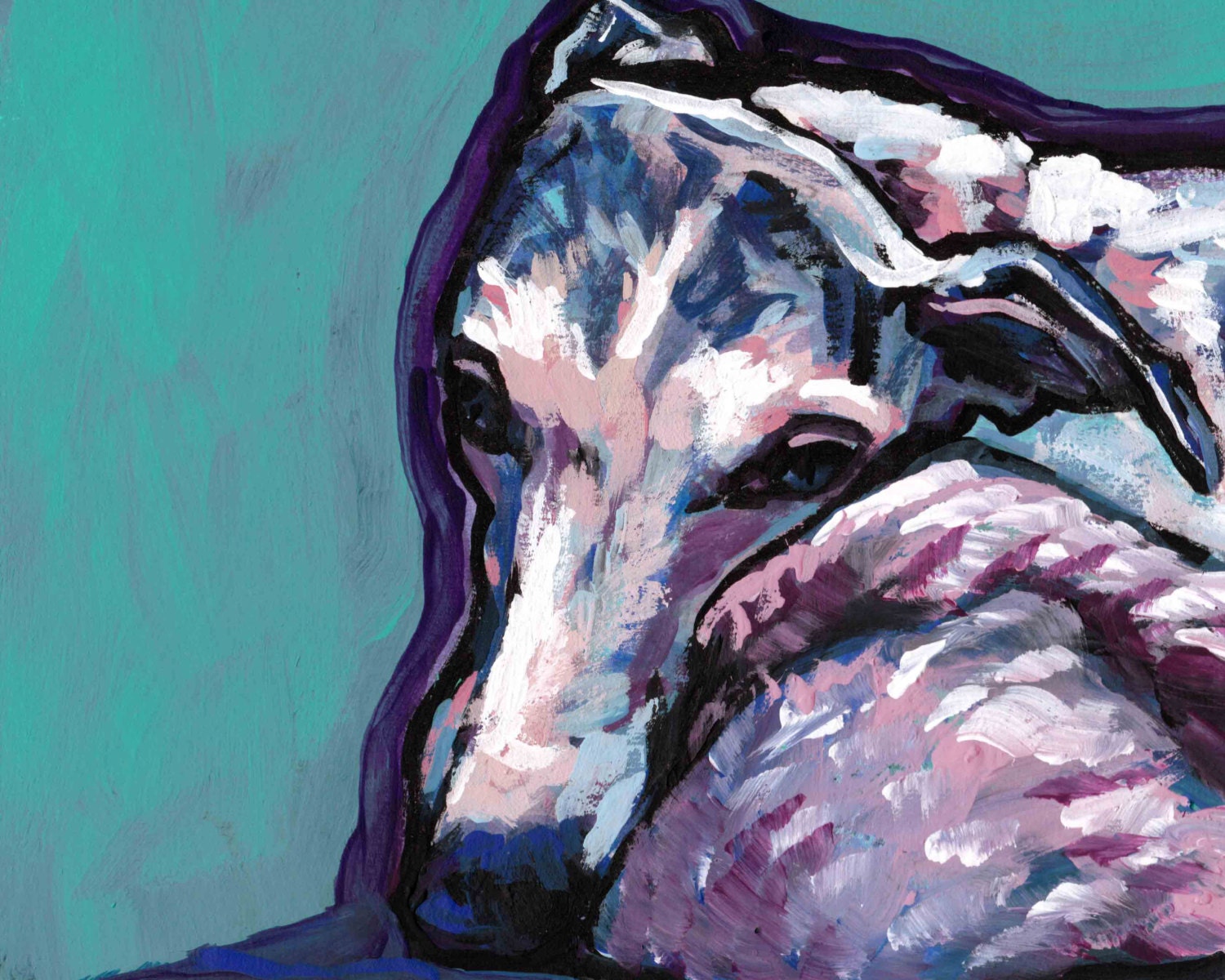 Whippet art print of modern pop art Dog painting bright colors greyhound 13x19