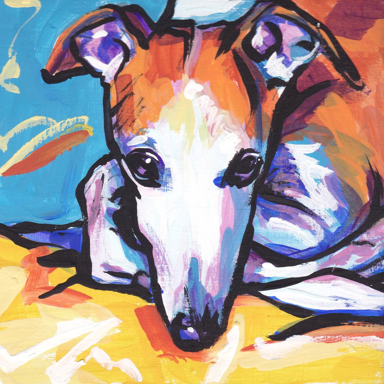Whippet portrait art print modern Dog pop art bright colors 12x12