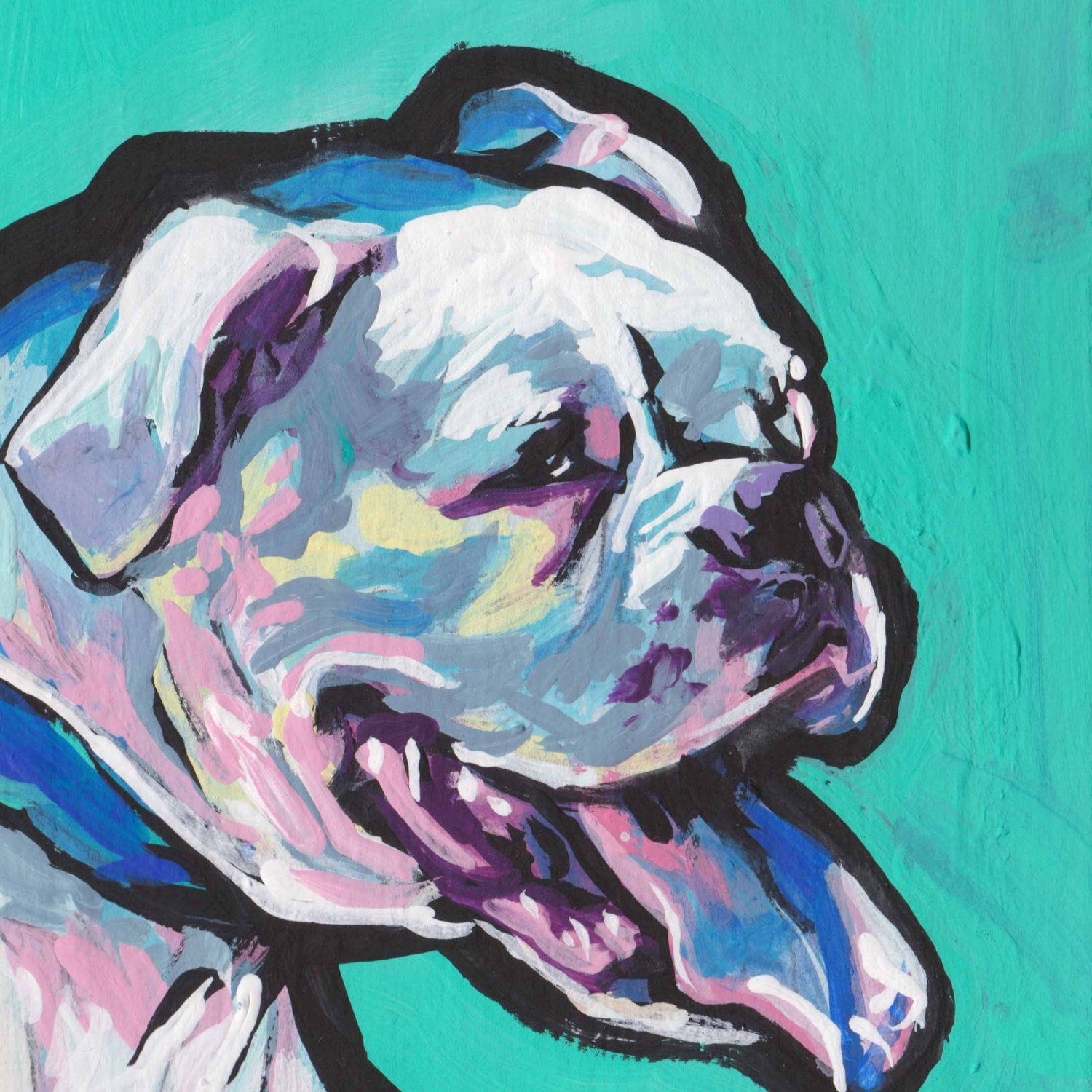 WHITE BOXER Dog bright colorful portrait art PRINT of pop art painting 12x12"