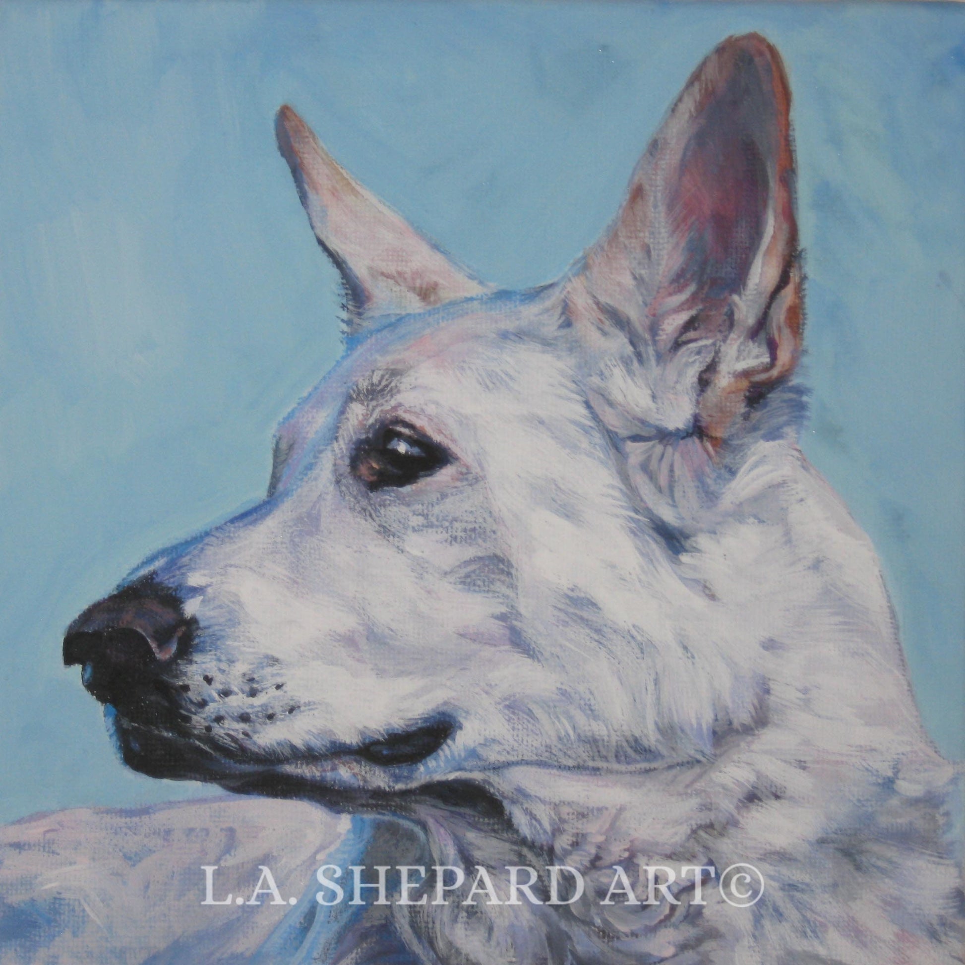 white GERMAN SHEPHERD dog art portrait PRINT of LAShepard painting 12x12