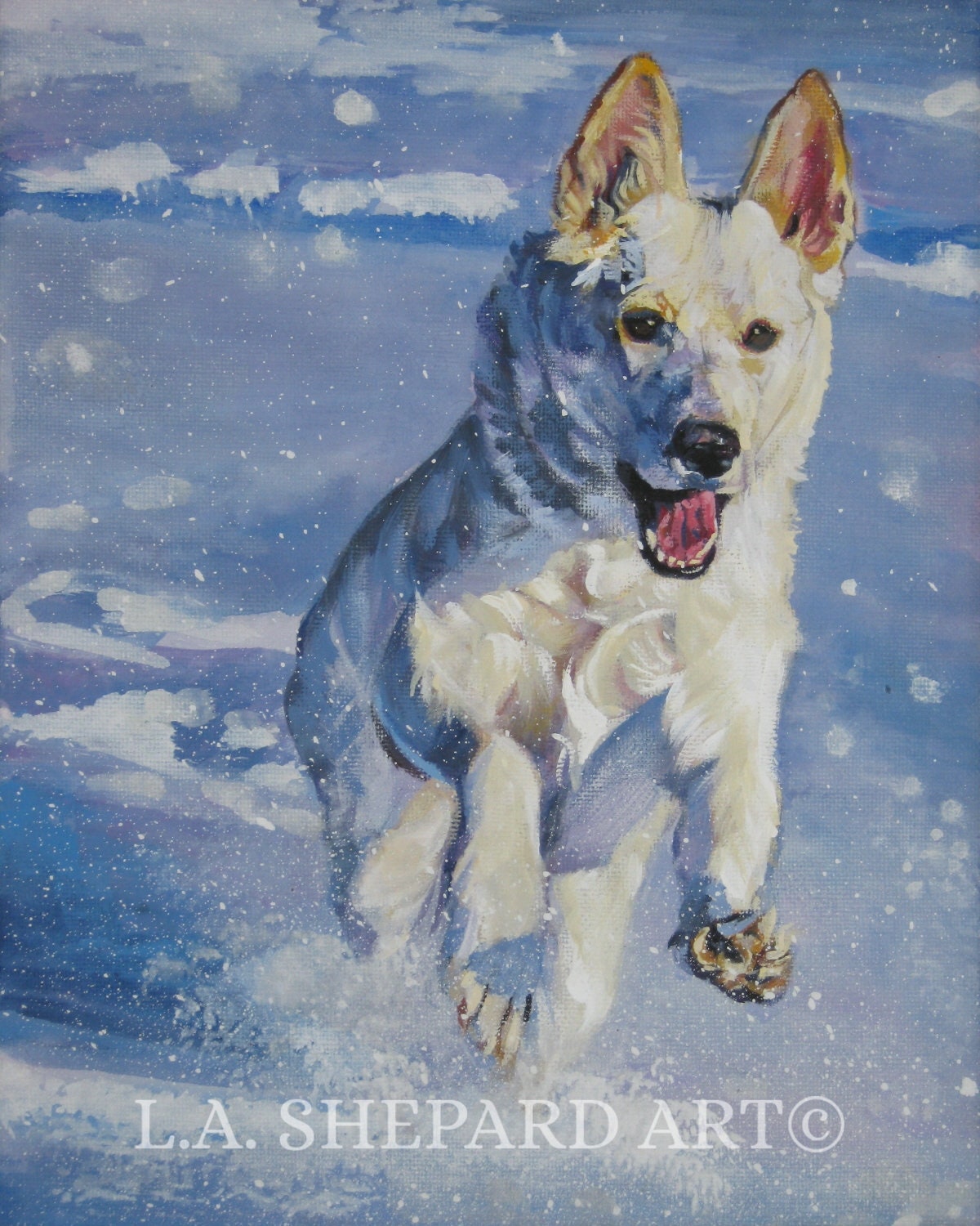 white German Shepherd dog GSD ART PRINT of LAShepard painting 8x10