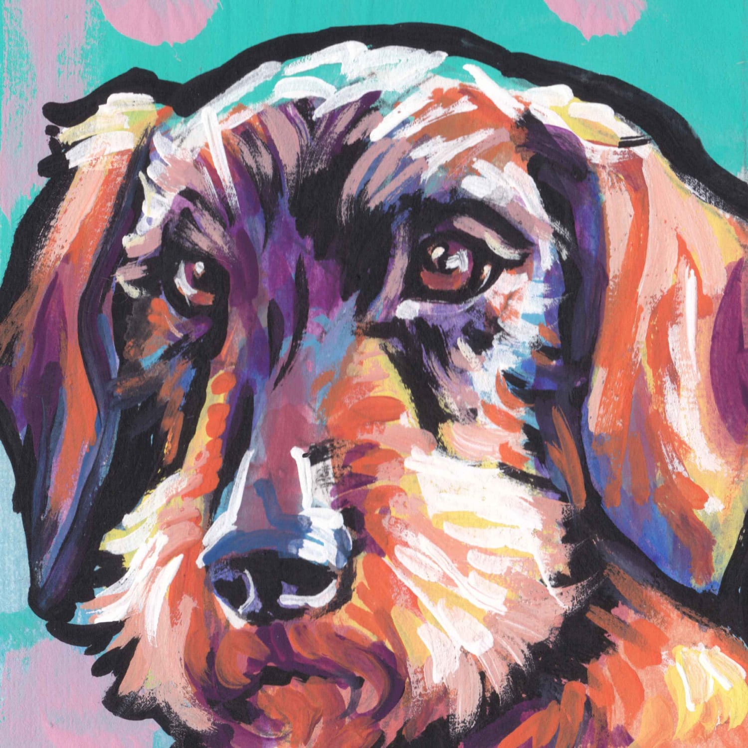 wirehaired Dachshund portrait print of pop art dog painting bright colors 12x12"