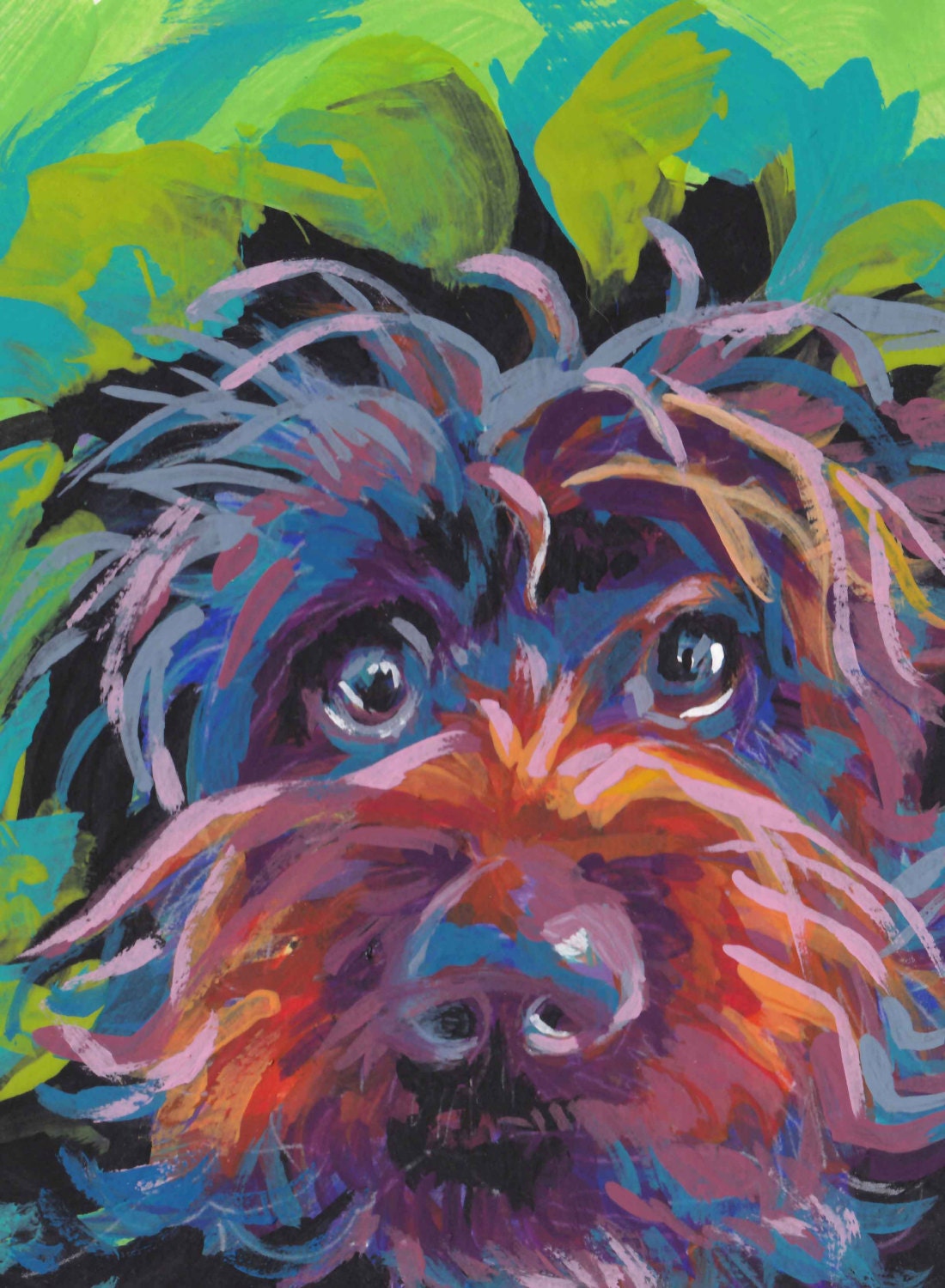 Wirehaired pointing griffon print of pop art dog painting bright colors 13x19" portrait