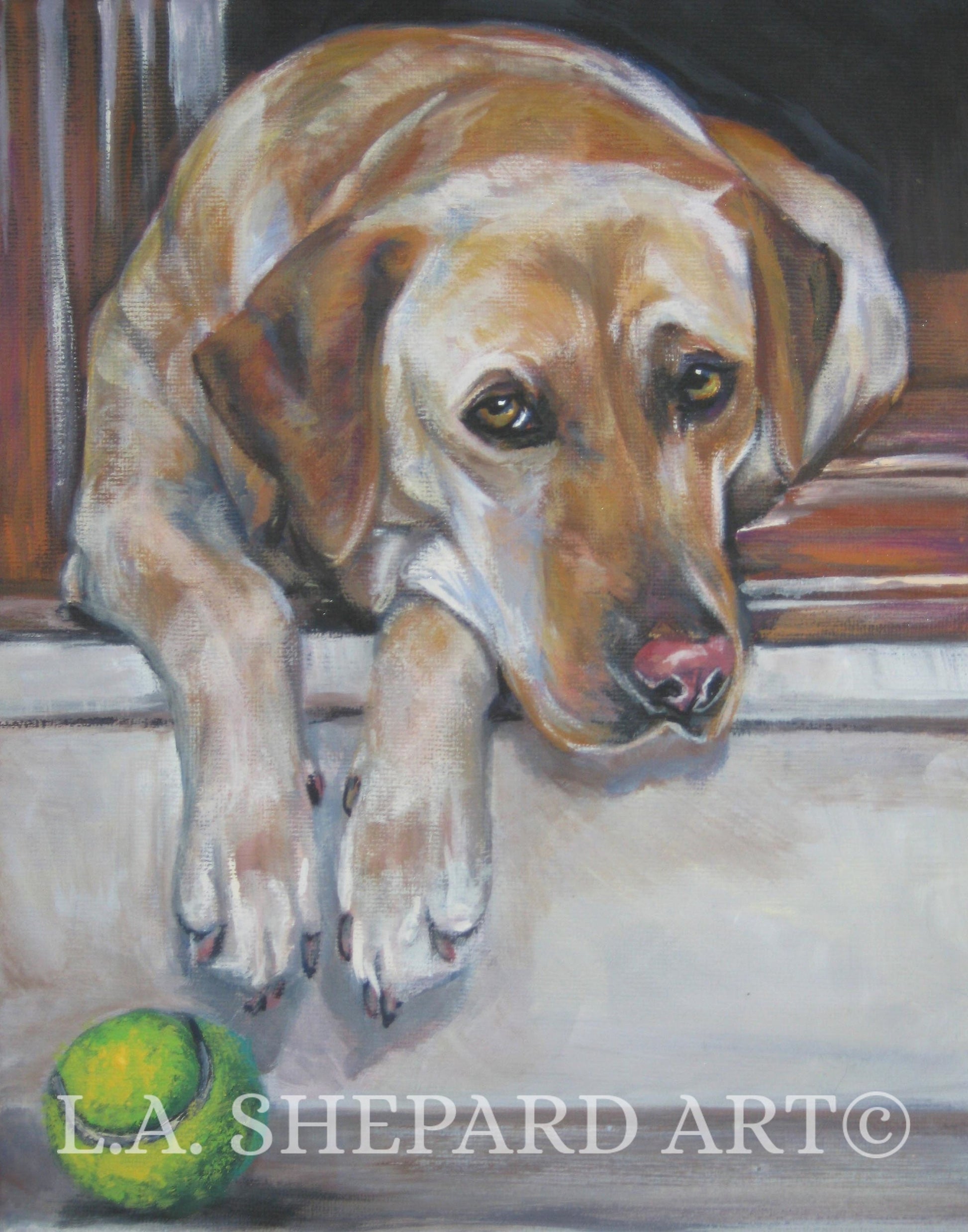 YELLOW LAB Labrador Retriever dog art portrait PRINT of LAShepard painting 11x14"