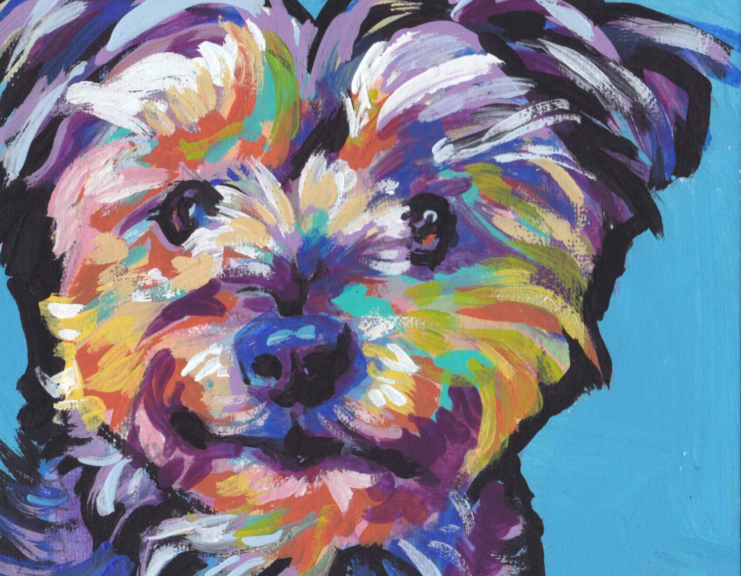 Yorkshire Terrier YORKIE ART PRINT pop dog portrait art bright colors 8.5x11"